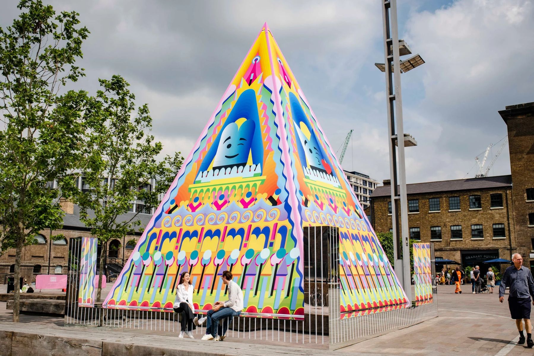 Adam Nathaniel Furman's "monumentally joyful" pyramid - https://www.dezeen.com/2021/06/24/adam-nathaniel-furman-proud-little-pyramid-kings-cross-london/